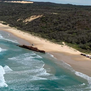 Today we had booked a full day‘s tour of Fraser Island, the world‘s largest sand island. We had an early start with a pick-up at 7.30am to take us to the ferry. It was, however, really warm and as the day progressed, it got pretty hot. Once docked at Fraser Island, our tour was on a 30 seater 4WD bus and during the day this vehicle had to navigate steep sandy hills, very bumpy sandy ‘roads’, go across the 75 mile beach ‘highway’ and pass through the tropical rainforest. Regarding the beach ‘highway’, this really has been classed as an official road and all the rules of the highway are enforced by the police; this was to stop the joy riding and all other motorised shenanigans on the island. So you could be stopped for speeding or drunk driving! We walked through the clear cool water of Eli Creek, then saw the shipwreck of the Maheno, which was a luxury liner built in 1905, that has been stuck in the sand since 1935 following a cyclone. We took an impromptu air plane ride in a 7 seater that took off from the beach and had a fantastic view of the island at 1000 feet. In the air we saw a lake shaped like a butterfly - this lake is totally inaccessible to man. We passed a beautiful eagle that was just lazing on the beach, before spotting some dingos, who didn't really care less that we were watching them. Then finally, up to Lake McKenzie, a perched (which means it contains only rainwater) lake with pure, white silica sands. The sand is so fine, that you can rub it into your skin and it is a perfect skin scrub; even made Keith's skin like a baby's bottom! The water was chilly, but once you started swimming, it was so refreshing. We took the ferry back as the sun set and, as we alighted the bus at our stop, there was a French restaurant, Aegean Waters, right in front of us, so we went in and had a really typical old fashioned dinner of French onion soup and lamb cutlets, washed down with a peasant red wine. Great end to a great day.